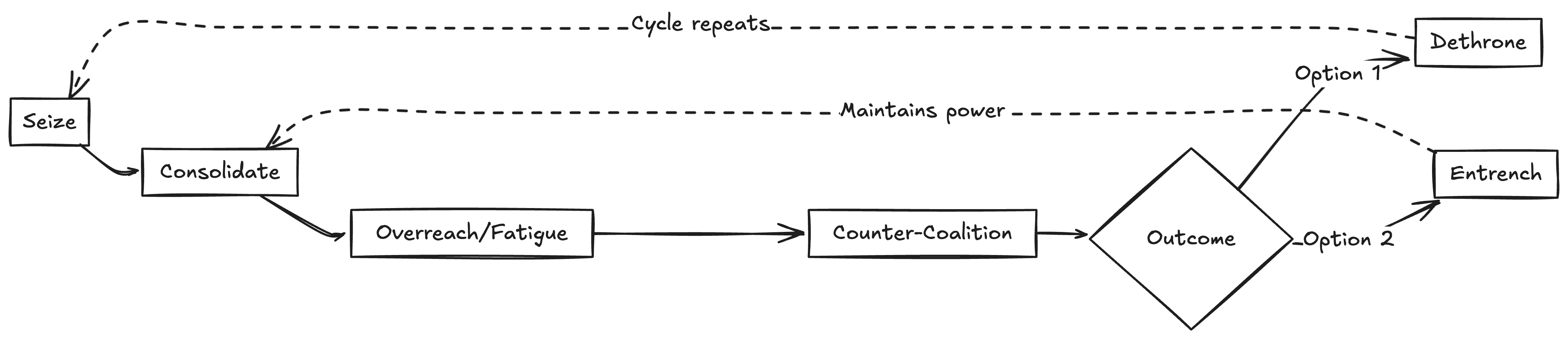The hill is built from attention + institutions: recommendation systems and news cycles; courts and school boards; donor networks and brand-safety rules. The crown certainly brings perks (like framing power, first-mover advantage), but it also has costs (constant scrutiny, coalition fatigue). And so the loop repeats:
